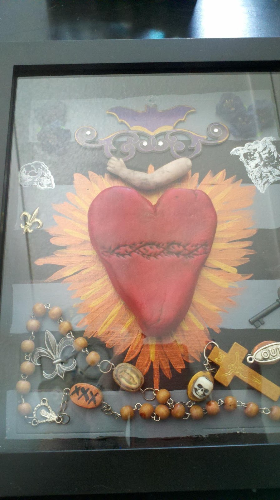 This one is made from a clay heart that I made a few years back and some saved and found things as well.